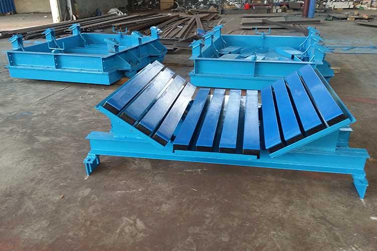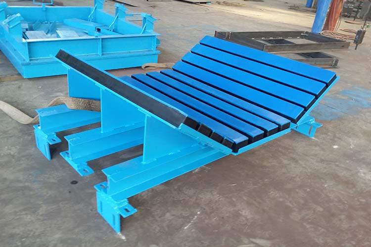 電廠緩沖床主要由緩沖支架和緩沖滑條組成,緩沖滑條主要三部分組成,高分子量聚乙烯板(井下黑色阻燃)、彈性橡膠(阻燃抗靜電)、鋼構金屬件。緩沖床也叫皮帶機緩沖床,主要用于皮帶機導料槽下方的落料口處,當物料下落時,緩沖床利用自身彈性對物料下落到皮帶上的沖擊力進行處理,使沖擊力達到較小,以保證皮帶機正常運行。除此之外皮帶機緩沖床的表層緩沖條擁有五百萬分子量的高分子聚乙烯板面,該高板于皮帶呈面面接觸,使?jié)櫥赃_到較高,摩擦系數(shù)降至較低。因此緩沖床對延長皮帶機壽命有著功不可沒的作用。